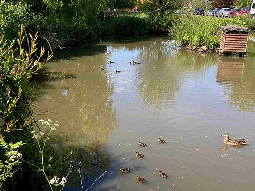 Lovely to see around 17 ducklings on the duck pond in the last week of April. It seemed that the mother duck was a really ‘good’ mother, trying to keep them hidden, but previous years have shown that it is quite a challenge to keep a brood of ducklings safe : she definitely benefitted from the vegetation around the pond. ​